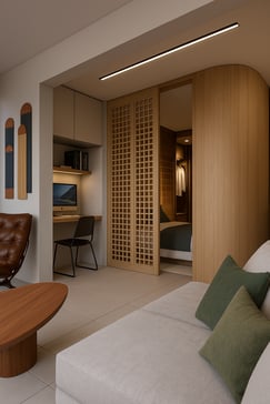 Desenvolvemos projetos que vão muito além da beleza: layout funcional, marcenaria sob medida, iluminação estratégica e escolha de acabamentos que valorizam o viver.
